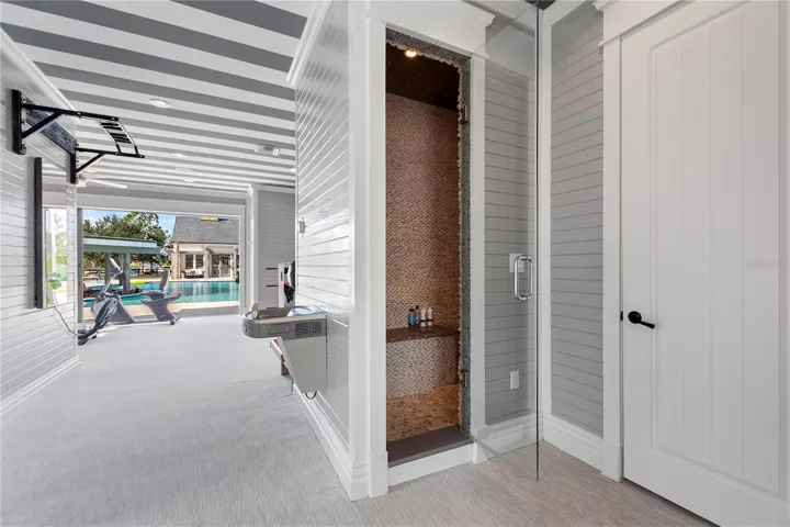 Entertainment meets unencumbered formality. The grande living room, fireplace & hearth is opposite the kitchen w/ triple thick rockface edged slab, 12’x 16’ kitchen continent. Sweeping views of the resort sized aquatic playground just beyond. Kitchen adjacent are breakfast & wine tasting rooms, showcase pantry, craft room, 2nd powder room, mud room, doggy bathroom (w/shower, separate tub, washer/dryer & pups potty access). The sunroom hosts formal dining & music conservatory anchored by it’s weighty brick fireplace & hearth.