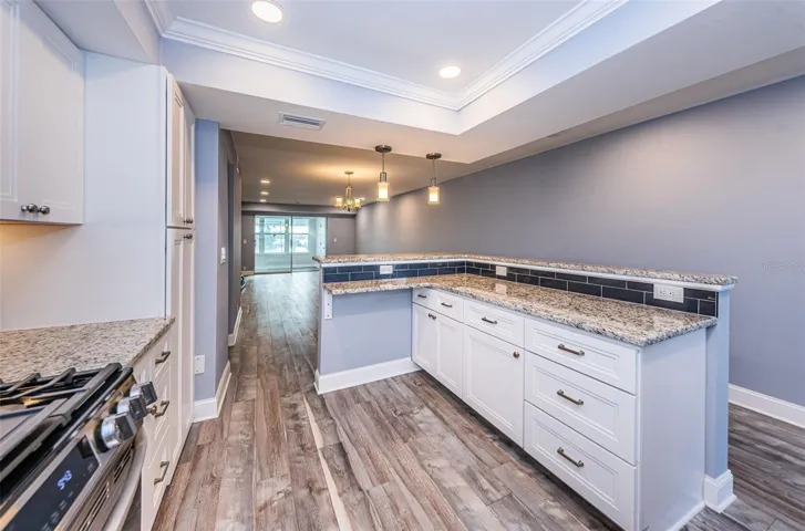 From the moment you enter through the private front door, you’ll feel right at home. A welcoming foyer opens to an expansive open floor plan filled with natural light and breathtaking Boca Ciega Bay views. The oversized, beautifully appointed kitchen features granite countertops, custom cabinetry, stainless steel appliances, decorator lighting, a pantry, and a breakfast bar—perfect for the home chef.