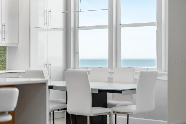 The lower level boasts two-bedroom en suites, a spacious entertaining area, and a laundry room, ideal for guests or extended family stays. On the second floor, an open-concept main living area and chef’s kitchen take center stage, offering panoramic Atlantic views. The kitchen boasts solid custom cabinetry, a coffee bar, secondary sink, and a spacious pantry, with sliding glass doors leading to a screened balcony perfect for entertaining. Front and back balconies on the second and third floors are ideal for enjoying stunning sunrises and sunsets, while a den or flex room on each level adds versatility to the space.