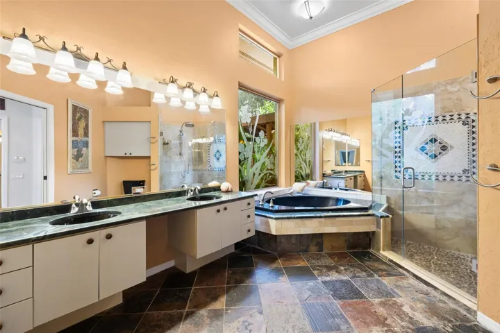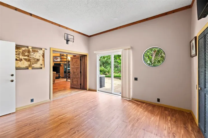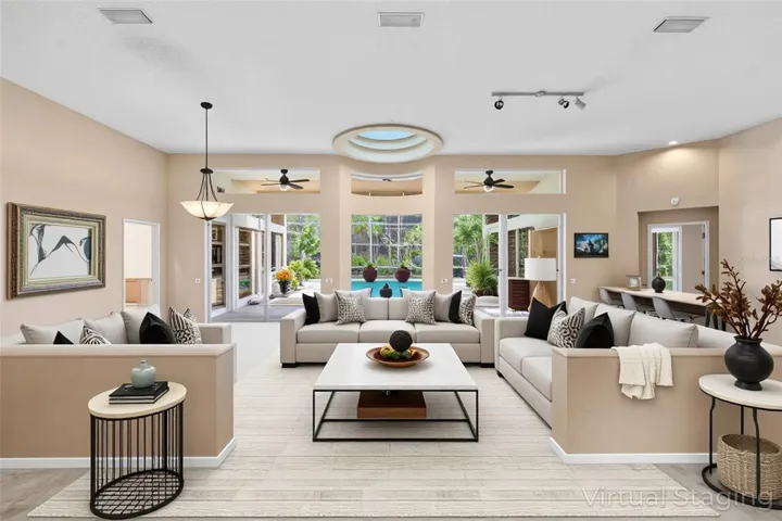 RARELY AVAILABLE. EXPANSIVE LOT. CONVENIENT LOCATION. PRIVATE AND SECURE. This hard-to-find lot creates a prime opportunity to tailor this custom-built Arthur Rutenberg residence into the perfect home for you and your family for years to come. Welcome to the exclusive community of Pine Valley Ranches, where the convenience of location and privacy meet natural beauty on this stunning 5.5-acre estate. If you love the serenity of Selby Botanical Gardens, this property will captivate you. Nestled among 414 mature oak trees, 174 palm trees, and an array of exotic foliage, the grounds feel like a private botanical oasis. Lush landscaping and thoughtfully designed built-in walking trails weave throughout the property, creating a peaceful, garden-like experience. A double-gated entrance and winding paver driveway lead you through dappled sunlight beneath a majestic tree canopy, setting the tone for the serene lifestyle. With no neighbors in sight, privacy is absolute, and one can feel secure on this property. This custom-built residence spans approximately 7,000 total square feet with a brand new roof and features 4 bedrooms, plus a den/office, and a remarkable three-story, Class 5 hurricane-rated safe structure—complete with a rooftop deck. Step inside through grand double doors into a spacious foyer that opens to a formal living area filled with natural light, 12-foot ceilings, and a skylight. Expansive double sliders open to a screened outdoor living area with an oversized pool area for grilling and an oversized patio ideal for entertaining. The triple-split floor plan offers spaciousness and functionality, enhanced by aquarium-style transom windows and octagon architectural accents. The expansive primary suite boasts two double sliders with direct access to the pool and outdoor lounge area. At the heart of the home, the recently renovated kitchen offers style and substance with custom wood ceiling insets, Samsung appliances, custom wood cabinetry, granite countertops, an extra-large pantry, and a large center island with comfortable seating. It flows seamlessly into a cozy family room with built-in shelving, an oversized marble fireplace, and a handcrafted wood mantle. Designed with versatility in mind, it serves beautifully as a guest suite, art studio, man cave, or entertainment space. Constructed with double steel-reinforced concrete, fireproof and hurricane-rated windows, handcrafted walnut doors, this structure features floating maple floors, skip-trowel plaster walls and ceiling, custom lighting, and hand-painted cedar crown molding. A spiral staircase connects to a second-floor studio or workshop, while the third level offers a rooftop deck with artificial turf—perfect for sunbathing, sunset watching, or a rooftop bar escape. Outdoors, immerse yourself in the peaceful surroundings. Meandering trails invite you through your private woods to explore the natural beauty of the property, which also features a koi pond and a detached concrete 400 sq ft garage—ideal for housing custom cars, tracker, golf carts, kayaks, paddleboards, and more. With its exceptional privacy and ample acreage, the property offers the opportunity to add a second residence (3rd structure). This 5.5-acre private parcel is well-suited for horse lovers seeking room for one or two horses, with possible horse barn or stall—perfect for at-home horse boarding while maintaining privacy and a natural landscape.