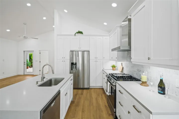 DRASTIC PRICE REDUCTION! Gorgeous new construction (2023) POOL HOME 3/2 just one block from Intercoastal! Situated in one of the nicest area of Clearwater, walking and bicycling distance from Downtown Dunedin and only 7 minutes from Downtown Clearwater. Open floor plan with split bedrooms and cathedral high ceilings thorough the home. The light and open space of this beautiful home is breathtaking. It features a spacious, ceiling insulated, back porch great for entertaining and a beautiful salt water pool surrounded by mature vegetation that give you lots of privacy and that overlooks an extra deep backyard. Home was newly rebuild and upsized and it was completed in 3/2023. Top of the line construction and upscale finishes. You have to see it this gorgeous home in person to appreciate how beautiful it looks and appreciate all the details. Also plans done for future additional detached dwelling unit in the oversized backyard.