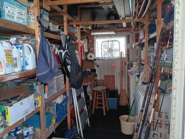 Very open and bright living space leading to a lovely 8×16 lanai across the front of this home. This room is set up to enjoy the view outside, having meals or snacks, enjoying tv, reading, etc. with windows across the entire front. What a great addition to this 2 bedroom, 1 1/2 bath home with a new roof in 2025, all paneled rooms changed to dry wall and insulated, A/C only 4 years old and front porch covered and protected from the elements. There are fans in all rooms and an unbelievably long (48 foot) carport to entertain friends and family protected from sun. Can put 3 cars underneath and still park another on the driveway. The shed houses the washer and dryer, has multiple storage as well as a work bench and more.