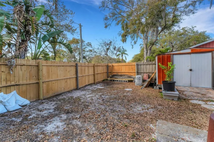 to an enclosed Florida room for extra living space. The backyard includes a covered patio, RV/boat storage, a shed, and a dog wash