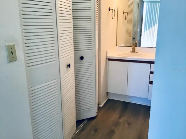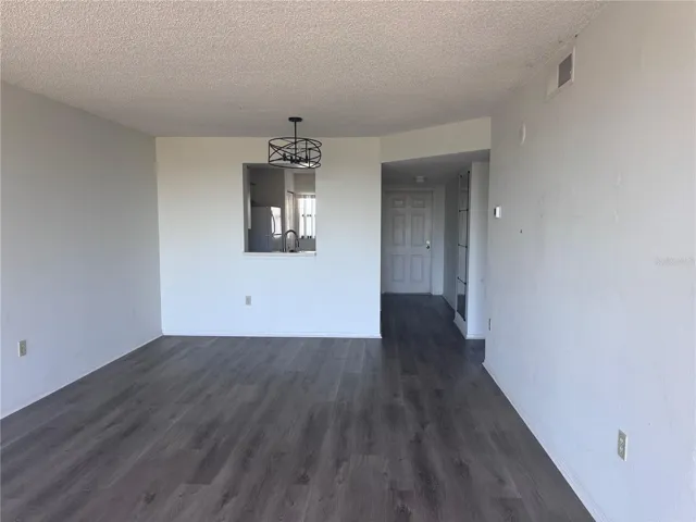 Welcome home to this charming 2-bedroom, 2-bathroom condo located on the 5th floor of the highly sought-after Cove Cay community. Come inside to find a freshly painted living room and kitchen with brand-new vinyl flooring throughout. The open layout and natural light create a warm, inviting atmosphere, while the in-unit stackable washer and dryer add everyday convenience. Relax on your screened-in patio, where you can enjoy peaceful views of lush greenery and the beautifully maintained public-access golf course. Cove Cay offers resort-style living with exceptional amenities, including a heated pool, clubhouse, and 24/7 gated security. You’ll also enjoy an elevator for added convenience, assigned parking and a prime location close to shopping, dining, and more. Please note Pets: Only 1 Cat permitted per the HOA.