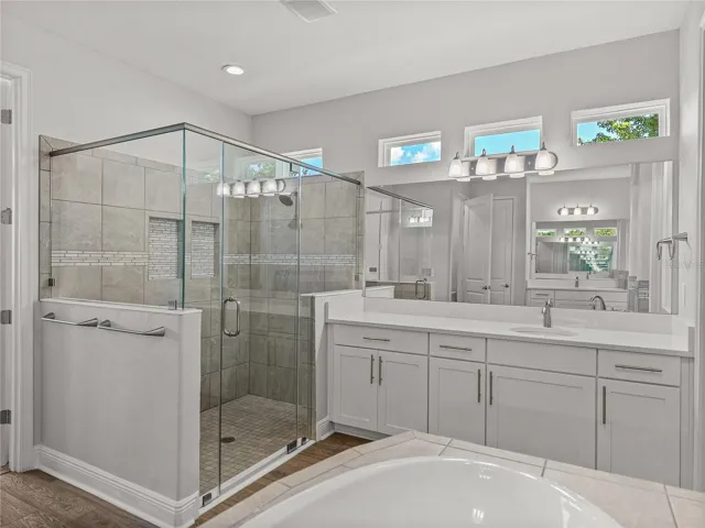 paver patio overlooking the fully fenced backyard- an incredibly rare find in Lake Jovita. Whether you’re sipping hot cocoa on a cool evening or celebrating with loved ones, this peaceful outdoor space with golf course views adds seasonal charm to every gathering.