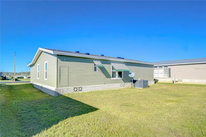 Step into the Florida lifestyle you’ve been dreaming of with this stunning home located in the sought-after Grand Horizons Community. This gorgeous fully renovated 2-bedroom, 2-bath home is filled with updates that will have you falling in love the moment you arrive. As you pull into the driveway, you’ll immediately notice the spacious two-car carport, offering plenty of parking and shade. Just to the left, you’ll find a beautifully updated Florida room featuring new roof. This is the perfect spot to unwind with your morning coffee or relax in the evening breeze. To your right is a large work shop for all your DIY projects. Step inside, and you’ll be greeted by a bright and airy floor plan that feels both inviting and functional. The open concept living room and dining area provide a wonderful space for entertaining or simply relaxing. The newly renovated kitchen is a true delight with ample cabinets, drawers, counter space and pantry plus a cozy breakfast nook for casual dining. The conveniently located laundry closet houses a washer and dryer, making chores a breeze. The spacious primary bedroom is designed for comfort, easily accommodating a king-size bed. The en-suite bathroom has been beautifully updated giving it a fresh and modern feel. On the opposite side of the home, the guest bedroom is equally generous in size and can easily fit larger furniture, providing a welcoming retreat for visitors. Recent updates throughout the home include fresh interior paint, new flooring, updated bathrooms, new ceiling fans, faucets and door hardware ensuring you can move in without a worry. Exterior updates in 2025 include a new roof, carport, vinyl siding, vapor barrier, home leveling, and water heater. The air conditioning unit and windows were also replaced in 2020. This property includes Rain Bird four zone in ground irrigation system on a separate water meter so you can keep your yard green without having to pay those dreaded sewer costs. Location is everything, and this home is perfectly situated across from the Grand Horizons’ pool and clubhouse. Whether you want to take a refreshing swim, join a game of shuffleboard, or participate in social events at the clubhouse, everything is just steps away. If you’re looking to retire early and soak up the Florida sunshine, or if you’re seeking a seasonal escape from harsh winters, this home is ready to fulfill your every need. Don’t miss the opportunity to make this beautiful property your own. Schedule a showing today and experience the charm of Grand Horizons living!