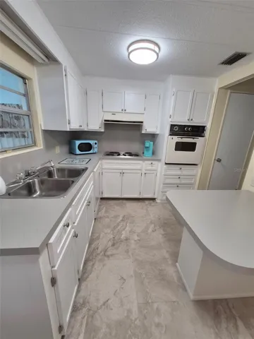 Talk about an eye-catcher—this stunning corner-lot home is sure to impress! Wrapped in durable vinyl siding and accented with stylish awnings and lush landscaping, the exterior not only enhances curb appeal but also adds to its lasting allure. The lowered Florida room, upgraded in 2024 with sleek ceramic tile, provides a space to relax, and with a sofa sleeper included, it easily accommodates the occasional overnight guest.
