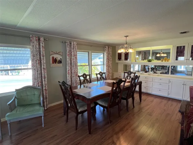 Immerse yourself in this meticulously maintained home, where charm and sophistication merge effortlessly. Fully furnished with tasteful décor, this residence exudes warmth and character. Freshly painted throughout, with crisp baseboards adding a polished touch, the home features sleek laminate flooring in most areas, complemented by durable tile in both bathrooms. Central heat and air ensure year-round comfort, while ceiling fans and strategically placed ceiling ducts enhance airflow. Newer, updated windows allow natural light to pour in, creating an inviting atmosphere. The kitchen is a true delight—neat as a pin and thoughtfully designed. It comes fully equipped with a refrigerator, range, oven, dishwasher, and microwave, along with a breakfast bar for casual dining. The sizeable dining area is perfect for hosting, featuring a built-in mirrored buffet, spacious cupboards, and generous room for entertaining. Seating is never an issue, with a comfortable living area as well as an additional seating area offering additional space to relax or welcome guests. The substantial primary bedroom serves as a private retreat, complete with an ensuite bathroom that includes a generous walk-in closet, a vanity, and an easily accessible walk-in shower. The guest bedroom is equally inviting, featuring a bright and airy ambiance with a large closet for storage. The recently updated guest bathroom showcases modern, stylish fixtures, with a tub and shower combination that offers luxury for visitors and residents alike.