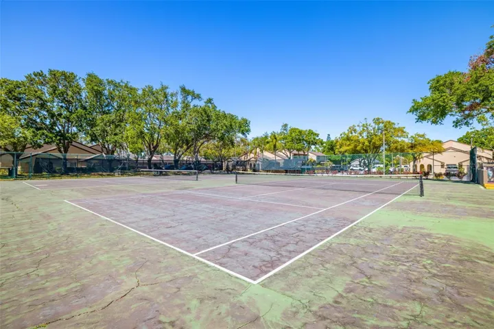 Residents can take advantage of the community’s amenities, including a clubhouse, tennis courts, and a pool!