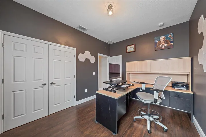 A detached shed, currently a home gym, offers great flex space. Set on a quiet dead-end street with mature trees and varied architecture, the home is minutes from I-75, UTC, Downtown Sarasota, beaches, the Legacy Trail, and Celery Fields.