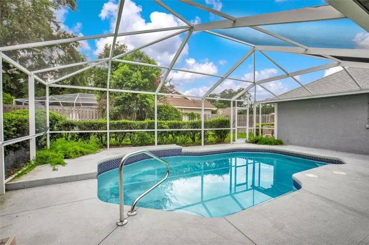 Located in the desirable Hunters Trace neighborhood of Ocala, Florida, this single-family home offers 4 bedrooms and 2.5 bathrooms, encompassing 2,286 square feet of living space. Situated on a 0.32-acre corner lot, the property features a screened-in pool, providing a private outdoor retreat. The interior boasts a split-bedroom floor plan, cathedral ceilings, and LUXURY VINYL PLANK FLOORING installed in (2024), also, New ROOF, AC Unit and FENCE were installed in (**2024**) ((* THE SWIMMING POOL WAS RENOVATED IN JAN 2026 *))