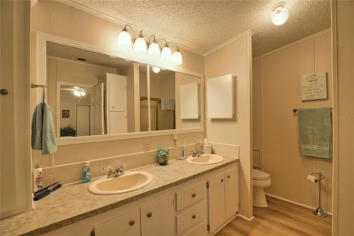 Discover the essence of Florida living in this captivating home! Tucked away on a serene street in a vibrant 55+ community, this is your golden opportunity to embrace the Florida dream. As you step inside, you’ll be welcomed by a spacious living and dining room combination, bathed in natural light thanks to an abundance of windows that create a warm and inviting atmosphere. Flowing seamlessly from the dining room, the sizable kitchen beckons you to create culinary delights, while the charming breakfast nook—complete with a built-in desk—provides an ideal space for your home office needs. Retreat to the generous primary bedroom, featuring double closets and a beautiful ensuite bathroom with double sinks, plenty of cabinets, and a luxurious walk-in shower, ensuring your comfort and relaxation. Your guests will feel right at home in the cozy second bedroom, conveniently located near an additional bathroom just down the hall. For added convenience, a dedicated laundry room enhances everyday living, leading you to a delightful bonus room. This sunlit space, surrounded by windows, is perfect for entertaining friends and family or unwinding with your favorite show. Recent updates amplify this home’s appeal, featuring a brand-new shingle roof (2024), a modern A/C unit (2023), sparkling new windows (2023), and a freshly constructed lanai,