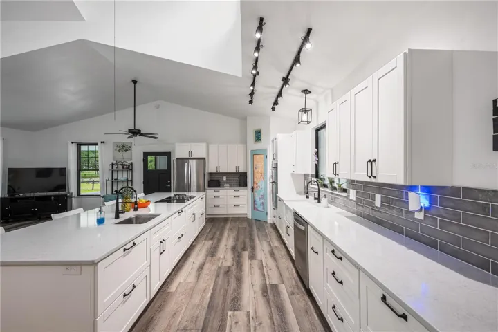 Tucked behind a gated entrance on 2 fully fenced acres, this spectacular 6-bedroom, 5.5-bath residence offers the perfect blend of luxury and comfort. From the moment you step inside, you’re greeted by soaring ceilings with sky high windows that flood the home with natural light, an expansive open floor plan, and a sense of space that flows effortlessly into the massive screened-in porch—ideal for morning coffee or sunset gatherings by the resort-style pool.