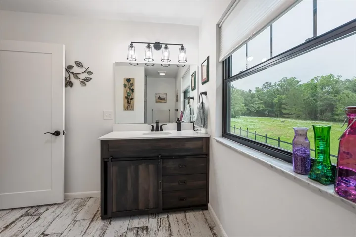 Every inch of this home showcases top-of-the-line upscale finishes, from the flooring to the fixtures. The oversized garage is equally impressive, featuring a half bath and a pull-through design for added convenience.
