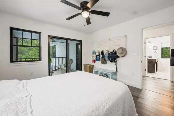 A true standout is the studio apartment above the garage—complete with its own private screened-in balcony and separate entrance, perfect for visitors, in-laws, or even an income-producing rental. There’s also another private screened porch off the upstairs bedroom, adding to the serene, retreat-like feel.