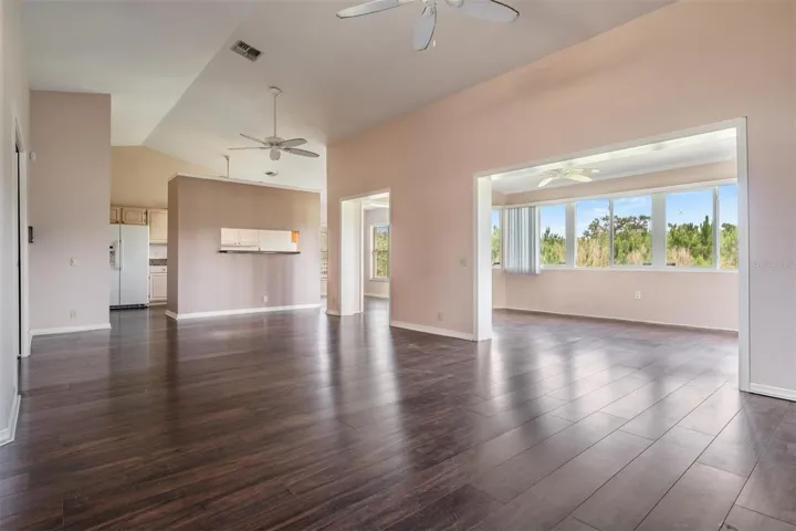 SELLER MOTIVATED! Welcome to this beautifully landscaped home in desirable Beacon Woods. This home offers 3 bedrooms, 2 full bathrooms, and a 2 car garage. Upon entering the double doors you will notice the spacious open floor plan with vaulted ceilings. The primary suite is private with french doors leading to the Fl room that sprawls crossed the back of the home with expansive windows allowing lots of natural light. The other bedrooms are located on the opposite side of the home. The third bedroom has double doors leading to the living/dining room which could also make a great den. This home has been well maintained and loved for many years. Within the last couple of months the seller has installed new A/C & water heater. You will love that there are no rear neighbors, the community is planning to add a park there for your future enjoyment. The HOA includes many amenities such as pool, tennis courts, pickle ball, fitness center, and club house. Also included in your fees: trash/recycling, lawn maintenance, cable, & internet. Schedule your appointment now.