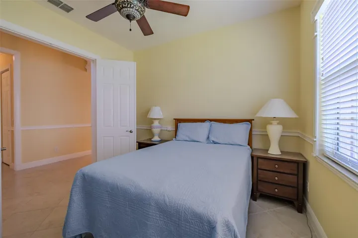 Seize this day and begin living your idyllic life in Valencia Lakes, Tampa Bay’s premier 55+ Active Adult Community. This 2018 GL Homes built BARBADOS model offers 2,268 SF under a/c, a very large lanai/screen room with a tremendous westerly water view and a tandem 3-car garage. On approach, take notice of the Florida friendly landscaping, the extensive space between homes, the full width pavered driveway, the accordion shutters, and the front & back of house eavestroughs. This BARBADOS has discretely beautiful street appeal. Upon entering the home, a foyer with a towering 13’-14’ tray ceiling provides a special welcoming space and a wonderful view into and through the home. Crown molding and custom millwork run throughout the house. Right of the foyer is bedroom 2 that features a lighted ceiling fan, plantation shutters on the bay window, and a custom closet. Forward of this bedrom is a full three-piece bathroom. Midway and right of the foyer is the third bedroom which features double French-doors, a customized walk-in closet and a ceiling fan. This might be a great space to fashion as an office or den. How will you choose to utilize this space? Forward of the foyer is an open floorplan that provides a dining room, great room, kitchen and dinette. The dining room features a gorgeous chandelier fashioned in vintage pink depression glass accented with gold, highlighting a comfortable space that will comfortably accommodate 8 persons. Forward of the dining room is an expansive great room that features a 10’-11’ tray ceiling with a ceiling fan, a 12’ wide sliding-glass door adorned with a retractable sliding shade. Adjacent to the great room is the dinette which is a perfect space for daily or intimate meals. The dinette basks in natural light provided by a sliding-glass door and a large window. The kitchen features a working island with a counter-height breakfast bar, a double-basin sink, and ample counter space. 42” solid maple cabinetry with 4 pot drawers and a pantry with sliding shelves, GE appliances, quartz counters and a stone arabesque backsplash make this kitchen both functional and beautiful. The primary bedroom is at the rear of the home and affords excellent separation from the other two bedrooms. It features two customized walk-in closets, a very large window adorned with plantation shutters through which you can catch amazing sunsets, a 10’-to-11’ tray ceiling and a wonderful ensuite bathroom. The ensuite bathroom has two separated vanities, a large walk-in shower, and a water closet for the commode. The 3-car tandem garage with its brilliant epoxy floors, belt-drive garage door opener that controls the insulated garage doors, and an additional walk-out door is certain to put another smile in your heart. Will you use the third garage for additional storage, a workshop, or perhaps that dream car? Environmental comforts are assured by a Goodman multi-stage HVAC, a Culligan whole house water softener system, and new (2024) STATE 50-gallon water heater. This BARBADOS is beautiful inside and out and it’s located on a very friendly and welcoming street.