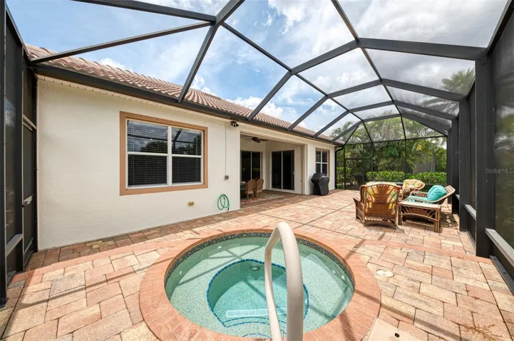 This home offers great curb appeal with a nicely landscaped yard, a paver driveway & walkway, NEW ROOF (2024) and NEW EXTERIOR PAINT (2024). The enticing paver Lanai and Extended Patio/Deck provide ample space for entertaining and relaxation in the sparkling heated Spa.