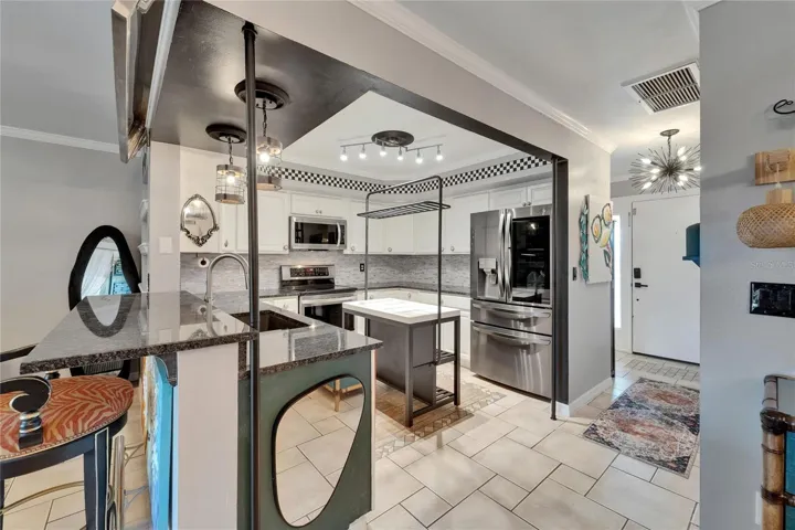 Welcome to 644 Yardarm Drive, a beautifully updated first-floor condo offering true waterfront living in the heart of Apollo Beach. This 2-bedroom, 2-bath home features over 1,000 square feet of living space and sits at a higher elevation—safe and dry through recent historic storms. Just steps from your back door, enjoy your own private 30’ deeded boat slip with a 6,000-pound lift on the extended Flamingo Canal, providing quick access to Tampa Bay. Inside, you’ll find a light and airy interior with beautiful tile flooring, and upgraded light fixtures. The kitchen has been reimagined with a new imported island, hardwood cabinetry, stainless steel appliances, a stand-alone icemaker, and a newer refrigerator. Both bathrooms were completely remodeled in 2025, and a new stackable washer and dryer, updated A/C (2018), and full electrical and plumbing updates completed in 2025 add peace of mind. The screened lanai was rescreened with premium 20/20 mesh in 2024, and an extended back patio with pavers and hose bib makes the perfect grilling area while you watch for dolphins and manatees. The long driveway fits up to four cars and includes an extra guest parking space, plus overhead carport storage and attic space above the second bedroom. This friendly, gated community features a pool, tennis and basketball courts, and beautifully maintained landscaping. The HOA covers the seawall, roof, irrigation, exterior and flood insurance- helping reduce your insurance and maintenance costs. Conveniently located near Finn’s and Circles restaurants, this move-in ready condo also allows short-term rentals see HOA guidelines—making it an ideal full-time residence, seasonal getaway, or investment opportunity.