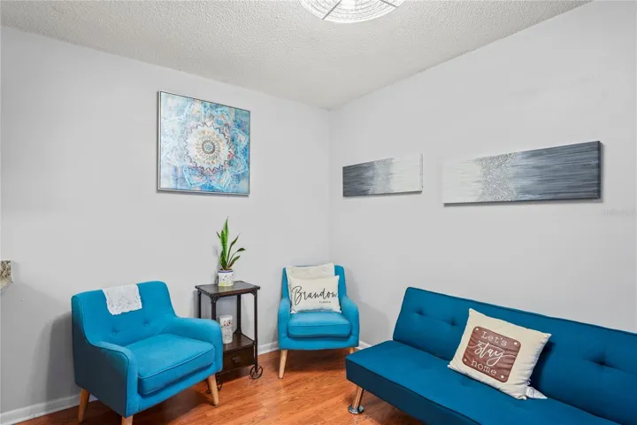 Welcome Home to this adorable Buckhorn Creek Townhome situated in the heart of Brandon. This 2/1 single story gem has a side yard with private gated entrance, offering the perfect blend of comfort, convenience, and privacy with no upstairs neighbors. Pets welcome! Step inside to an open, light filled area with neutral tones and easy-care laminate flooring. The sliding glass door in the living room gives you easy access to your patio yard. The functional kitchen includes ample cabinet and pantry space and an eat-in breakfast bar. Both bedrooms are well sized with carpet and provide generous closet space. Refrigerator, Washer, and Dryer are all included in the sale. Located within the private yard is an exterior storage closet attached to the home. 2 parking spaces are included, one covered (directly in front of the home) and one uncovered, plus visitor parking. Enjoy hot Florida summers in the well maintained community pool and recreation area, which includes a fire pit and other outdoor amenities. You cannot beat the affordable price of this property. Schedule your private showing today!