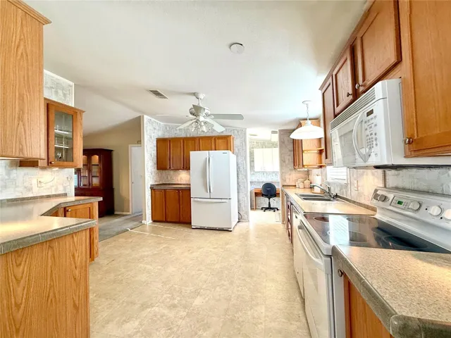 AMAZING PRICE! Do not miss this spacious home in the resort-style 55+ resident-owned waterfront community of Caribbean Isles. If you’re ready to make a move, this 1620 square foot, three-bedroom, two-bath home is ready for your seasonal enjoyment or year-round retirement. This FURNISHED and accessorized home features a large SCREENED IN LANAI, a dedicated laundry area, right off the kitchen, with ample storage and workspace, and a separate WORKSHOP with plenty of room for hobbies or DIY. The kitchen opens to the dining and living areas while maintaining a sense of separation—perfect for perfecting your cooking skills. The primary suite comfortably accommodates a king-sized bedroom set and is thoughtfully separated from the guest rooms on the opposite side of the expansive living room. A private office area, enclosed, and just off the kitchen, offers a quiet workspace or hobby nook. Additional features include HIGH CEILINGS, large windows that fill the home with natural light, and a walk-in shower. Caribbean Isles is a WATERFRONT COMMUNITY built along a series of canals, with concrete seawalls, that lead out to Tampa Bay. Residents can take advantage of BOAT AND RV STORAGE in the community lot for an affordable annual fee ranging from $120 to $250, depending on space needs. The community is GOLF CART and PET FRIENDLY. Located midway between Tampa, St. Petersburg, and Sarasota-Bradenton, and within a day trip to Orlando’s theme parks, Caribbean Isles offers both tranquility and convenience. Apollo Beach provides everything you need locally—from shopping and dining to recreational activities. There is NO LOT RENT. Ownership includes an ownership share in the resident-owned cooperative. The monthly maintenance fee of $242 covers professional management, upkeep of private roads, a boat launch, dog park, lagoon park, community amenities, and funding for replacement reserves.