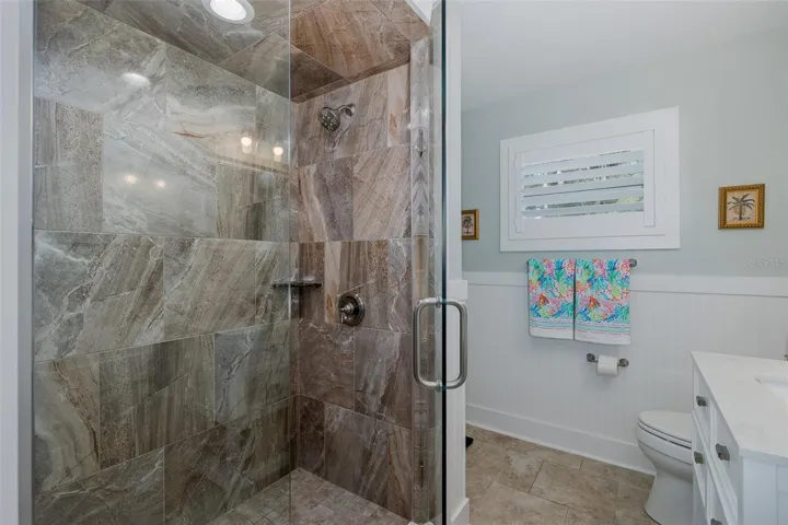 The spacious living room is filled with light from a lovely picture window, while the dining room offers ample space for gatherings. The oversized screened and tiled back porch may just become your favorite spot — perfect for relaxing while overlooking the private, fenced backyard brimming with tropical plants. There’s plenty of room for grilling, games, or an evening bonfire. Enjoy the convenience of an outdoor shower after gardening, a beach trip, or kayaking.