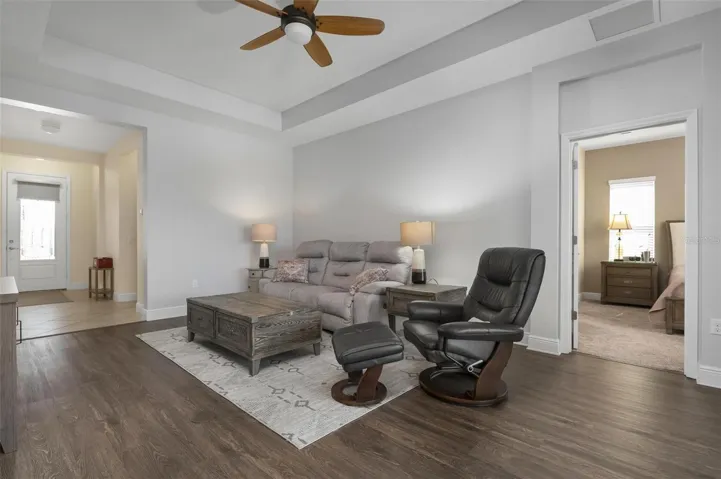 If you’ve been searching for a lakefront home with a big fenced yard, screened lanai space, and a quiet gated neighborhood close to UTC, this one stands out. The backyard feels like its own retreat with a 10×27 screened lanai, paver patio areas for grilling and entertaining, pull-down Coolaroo privacy shades, exterior lighting, hurricane shutters, and retractable hose reels already in place—ideal for anyone who wants low-maintenance outdoor living or space for pets.