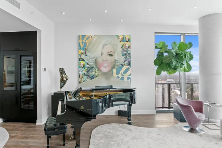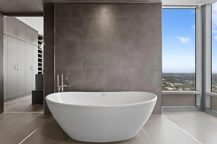 UNPARALLELED PENTHOUSE SANCTUARY | THE SKY COLLECTION AT THE ONE IN DOWNTOWN ST PETE | This is not merely a residence—it’s a statement. Exclusively crafted by combining two premium units during the building’s construction, this extraordinary penthouse represents the pinnacle of luxury living in downtown St. Petersburg. Perched on the 39th floor, this one-of-a-kind sanctuary offers the most coveted panoramic views of Tampa Bay through floor-to-ceiling windows that frame the endless horizon. This residence lives like a single family home with 11’ ceilings and amenities that you would only typically find in a home. Culinary Excellence Redefined | The chef’s kitchen stands as a masterpiece of form and function, featuring an oversized waterfall island with stunning 2.5-inch Sapienstone countertops that flow seamlessly into a matching backsplash. Exquisite imported NAC-crafted cabinetry provides both beauty and superior functionality throughout. Every detail has been meticulously considered: Jenn-Air double panel refrigerators, a Jenn-Air Euro Style Series double oven, a premium Rohl sink, and a full butler’s 2nd kitchen that can be completely hidden from the main living area which also has its own private entrance for easy catering and deliveries. The sophisticated bean-to-cup Miele coffee machine and built-in Miele wine refrigerator positioned perfectly off the dining area ensure effortless entertaining at the highest level. Master Suite Wellness Sanctuary Retreat | Take in your private haven featuring soaring high ceilings and an oversized master closet with custom cabinetry expertly crafted by California Closets and NAC, creating a sophisticated storage solution that rivals the world’s finest boutiques. The spa-inspired master bath becomes your personal age-rejuvenation center with dual vanities featuring premium Grohe fixturing, a luxurious soaking tub, and an oversized shower complete with a Steamist steam system and a unique built-in cold plunge tub. This extraordinary combination of therapeutic heat and invigorating cold therapy offers the ultimate in wellness and anti-aging benefits, creating your private longevity sanctuary. The Kohler smart toilet reflects the attention to innovative luxury throughout. Unmatched Privacy & Outdoor Living | As the building’s only recessed unit, this penthouse provides an unparalleled sense of privacy and exclusivity. Rollease Acmeda motorized shades with remote controls offer effortless light control while maintaining those stunning vistas. The expansive 600-square-foot wrap-around terrace—the largest in the entire building—becomes your private sky deck, complete with curated designer furnishings and an elegant fountain, creating an outdoor oasis suspended above the city. Sophisticated Living Spaces | Every room showcases globally-sourced designer furniture, finishes, fixtures, including 3 stunning Murano chandeliers. A premium Sonos sound system provides seamless audio throughout, while four Samsung Frame TVs blend technology with aesthetics. Refined Guest Accommodations | Guest bathrooms showcase elegant marble flooring and feature Villeroy & Boch commodes with premium Grohe fixturing, ensuring every visitor experiences the same level of luxury. Turnkey Luxury | Available partially furnished with select exclusions, this residence allows you to simply arrive and begin living at the highest level. This is more than a home—it’s your signature in the sky.