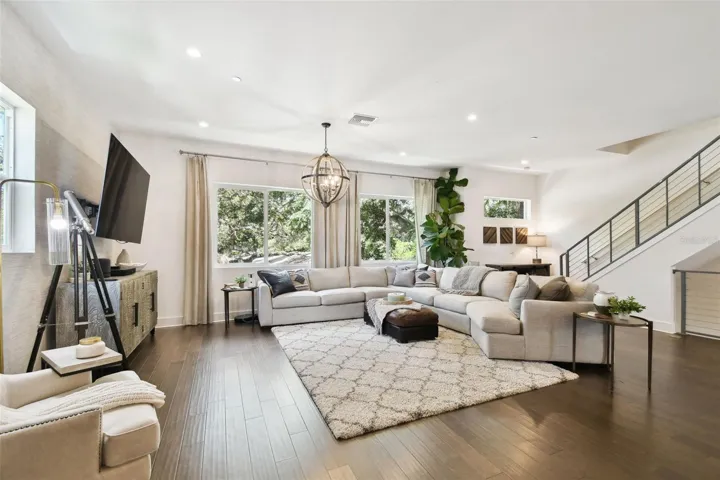 Luxurious living in this 4 story Modern Townhouse in the heart of South Tampa. This End Unit has Three Bedrooms, Three and Half Baths, 2 Car Garage with Rooftop Deck and is the largest floorplan in the development. Tons of natural light coming in from three sides. The First floor has an oversized garage with plenty of storage, Guest Suite which is currently being used as a Home Gym, and Fenced in Patio with artificial Turf making the perfect Dog Run. Second Floor has the Kitchen, Dining area, and Living Room. This spacious Gourmet Kitchen has all the upgrades: Quartz Waterfall Countertops on the oversized Island, Stainless Steel Appliances, Gas Range and Hood, Custom Pendant Lighting, Soft Close Solid Wood Cabinets with an open floor plan making it perfect for entertaining. The Third Floor showcases the Master Suite, another Bedroom With En-suite Bath, Laundry Room, and Storage closets. The Master Suite makes the perfect get away with seating areas, Walk-in Closet with plenty of Built-in Organizers, and a Spa like bathroom. The 4th Floor Deck is what really makes this community exceptional. The deck comes complete with Hot Tub, Built in Grill, Fridge, Bar, TV, plenty of seating, and amazing views of South Tampa. South Macdill Townhomes is conveniently located close to Dale Mabry, The Crosstown Expressway, Macdill Airforce Base and is an easy commute to Downtown Tampa, the Gandy Bridge, Bayshore Boulevard, and Hyde Park Village.