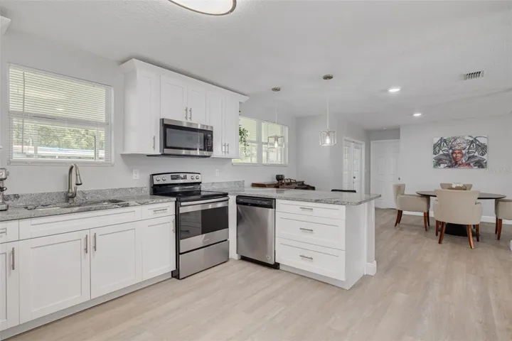NEW ROOF. The roof was replaced in 2026 and has a 10-year roof warranty. This beautifully remodeled home is nestled in the coveted Riverside neighborhood. This upscale home offers three bedrooms and two full baths, all bathed in natural light through newer windows and soaring ceilings. Rich, wood-tone luxury vinyl plank flooring flows through the open floor plan, creating a contemporary yet welcoming ambiance. The chef’s kitchen impresses with modern cabinetry, sleek granite counters, stainless-steel appliances, a large breakfast bar, and a spacious pantry, perfectly designed for both everyday living and entertaining. French doors open to an oversized screened lanai overlooking a fully fenced backyard, providing privacy and year-round enjoyment. The yard is also home to a Nam Doc Mai Mango tree known for its ultra-sweet fruit. The private primary suite offers a relaxing retreat with a walk-in closet and a spa-inspired ensuite bath featuring dual vanities and a walk-in shower. Two additional bedrooms share an updated full bath with dual sinks and a tub/shower combo, perfect for family or guests. A dedicated indoor laundry room, complete with Samsung washer and dryer, adds convenience, while a carport with direct access to home and expansive front yard provide ample parking. This home was remodeled in 2019/2020 with quality finishes and is in move-in ready condition. It features a 2026 roof, 2020 whole house water softener & filtration system, 2020 water heater, 2020 plumbing supply re-pipe, 2019 HVAC and 2019 electrical panel (200 amps). There is an optional piano conveyance for musicians or aspiring learners. A BIG PLUS: Located in Flood Zone X and no HOA, this home offers peace of mind and freedom. Elementary school in the neighborhood. Minutes from the Golf and Country Club and scenic Riverside Park with Hillsborough River trails and playgrounds. Conveniently located four miles from the University of South Florida (USF) and just over ten miles from downtown Tampa. See this exceptional ranch retreat and make it your home.
