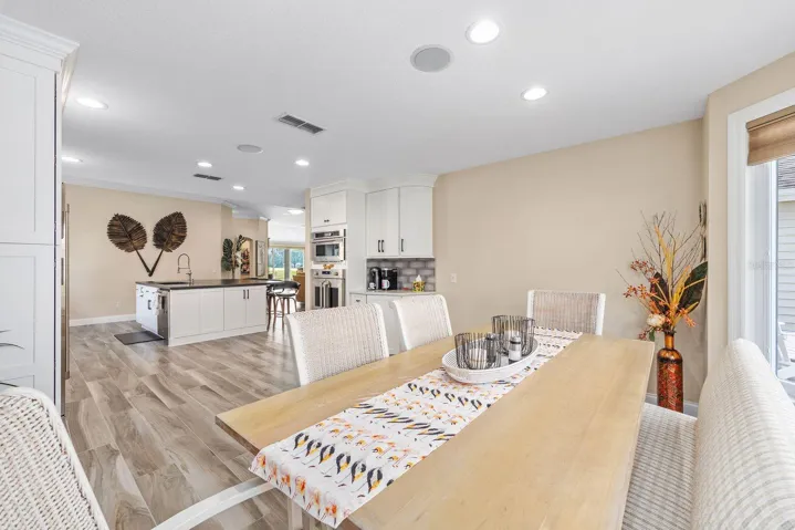 This beauty is getting a new HVAC!…BEAUTIFUL GOLF FRONT! Watch the golfers coming down the #7 fairway of the Hacienda Lakes Course. Updated inside and out with many extra features many homes do not have such as EXTRA HEIGHT 4 panel stacking sliding glass door leading your outdoor living oasis with Twin Eagles ceiling mounted electric radiant heaters for the cool nights, additional power sunscreens over the entire lanai. Inside is a spacious living room with DRY BAR that hosts a 2-drawer refrigerator, PULL-OUT shelves in the cabinets, storage for all your glasses and beverage accessories. THE kitchen is a jaw dropper with all PULL-OUT DRAWERS around the FABULOUS ISLAND with custom powder coated metal countertop from Arkansas. SOFT CLOSE DOORS as well as LED lighted cabinets. Top-tier appliances including Electrolux Icon 32′ Freezer and 32” Refrigerator w/custom double vent, GE Monogram Cafe’ doors convection oven and GE Monogram induction cooktop with Wolf power ventilator/light. Enjoy the COFFEE BAR with water hook-up for your convenience. The Primary bedroom ha 10 ft high closet storage with double hanging and additional shelves for storage. The Primary bathroom has double sinks with storage tower between them. Custom large glass enclosure shower. Enjoy the privacy of a split floor plan with the guest bedrooms across the living room. Guest bedroom 1 has a closet. Guest bedroom 2 has a space for a closet or could be converted into a large work space w PLANTATION SHUTTERS. The oversized interior laundry room has plenty of space for storage and large laundry sink. The garage is an extra deep 2 car garage with an additional 3rd stall golf cart garage/shop space. Want outdoor living? How about outdoor living Visitors will enjoy the putting green and outdoor patio space or just relaxing with their favorite beverage while watching the golfers on the green. Stunning sunrise view with a variety of pine, palm, and oak trees. Close proximity to the multi modal path available on the other side of the golf course. Click on the virtual tour link for a walk through look.