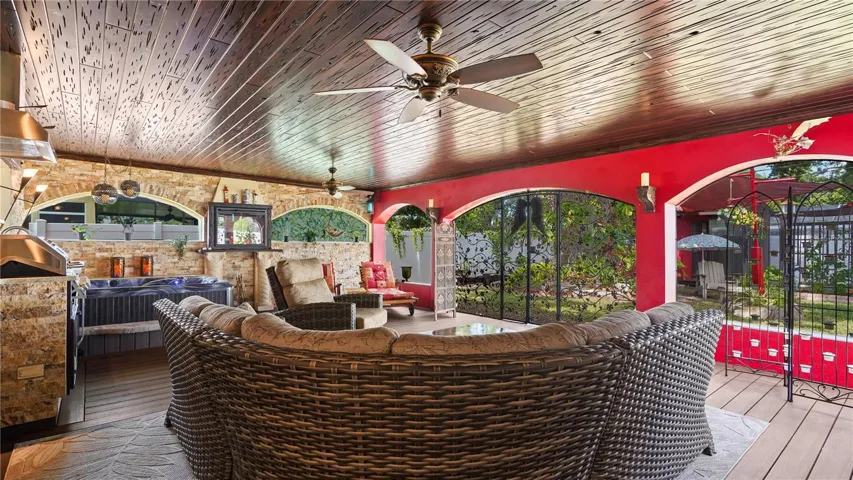 The home’s standout feature is its expansive, fully enclosed and covered outdoor living space—perfect for entertaining or relaxing in comfort. A built-in bar and grill with spa provide a true extension of the living space and invite year-round enjoyment.