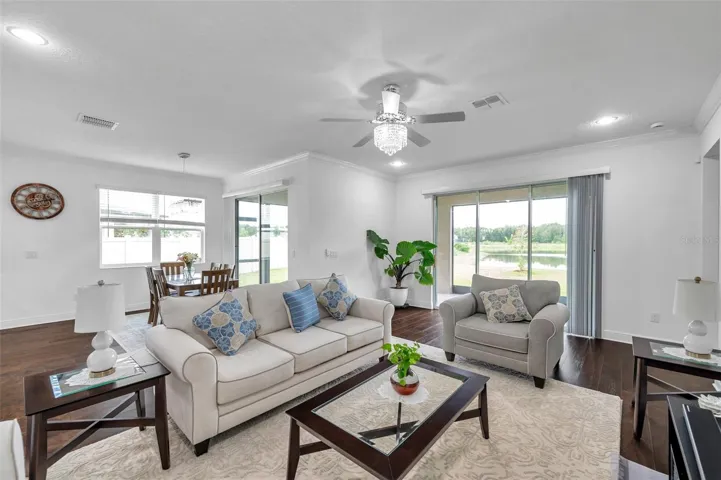 Outside, enjoy Florida’s year-round beauty with a large covered and screened-in patio overlooking serene pond views—an ideal setting for relaxation or entertaining. The home also features a spacious laundry room and is equipped with modern conveniences like walk-in closets and premium finishes throughout.