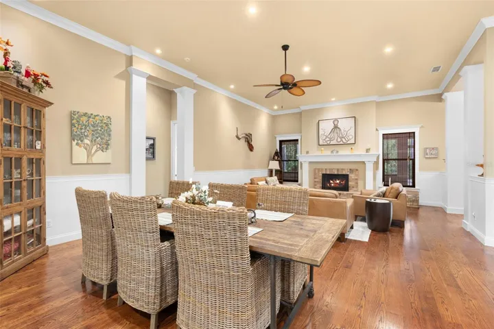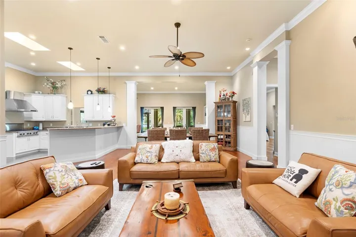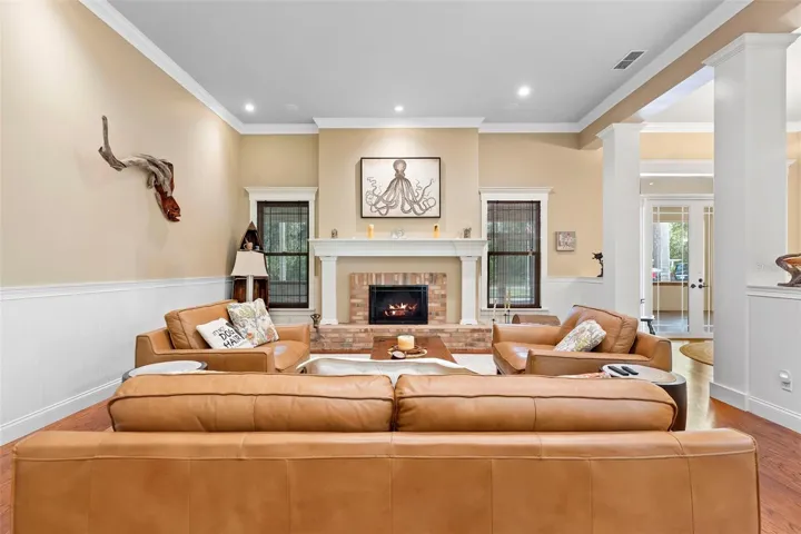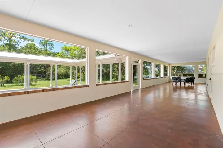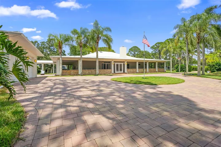 Welcome to 2659 Pioneer Trail, one of the most unique luxury properties in New Smyrna Beach. This exceptional estate blends timeless elegance with modern luxury and classic Southern charm. Perched on 2.66 acres of meticulously manicured and fully fenced land, the property offers ample space for RVs, boats, animals, or anything your lifestyle demands. A custom-built, nearly 4,000-square-foot wraparound porch provides stunning views of mature pines and a tranquil pond, enhancing the home’s sense of privacy and seclusion. Inside, the home offers 3,039 square feet of refined living space, thoughtfully designed to blur the line between indoor and outdoor living. Nine sets of French doors seamlessly connect the interior to the expansive wraparound porch, allowing abundant natural light to pour into the home and creating an effortless flow for entertaining and everyday living. As you step through the front door, you are met with soaring 12-foot ceilings, full crown moulding, classic hardwood flooring, and an expansive family room anchored by a stately wood-burning fireplace. The chef’s kitchen features granite countertops, a gas range, deep sink, prep sink, and generous workspace- perfect for entertaining or everyday living. The primary suite is a true sanctuary, complete with a private office or library, a spa-inspired bathroom with freestanding tub and dual vanities, and a spacious walk-in closet. Two additional bedrooms serve as private retreats, each offering en-suite bathrooms and French doors opening directly to the wraparound porch. A brick-lined courtyard connects the home to an oversized two-car garage via breezeway, while a secondary gated entrance provides easy access for trailers, large deliveries, or additional parking. The main entrance is hidden behind an automatic gate, leading down a hand-laid brick paver driveway bordered by manicured hedges and opening to a grand roundabout with a stately flagpole- an arrival that sets the tone for the elegance within. The property has been meticulously maintained and thoughtfully updated, including a whole-house Generac generator, updated HVAC system (2024), two new hot water heaters (2024), fresh interior and exterior paint, a gutter guard system, and more. Offering unmatched character, functionality, and a rare harmony with nature, this estate is more than just a home- it’s a lifestyle.