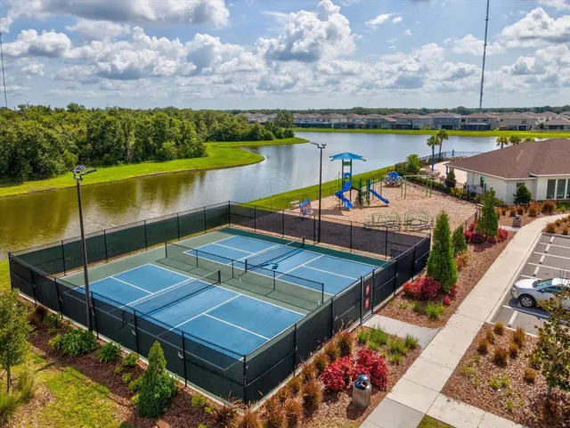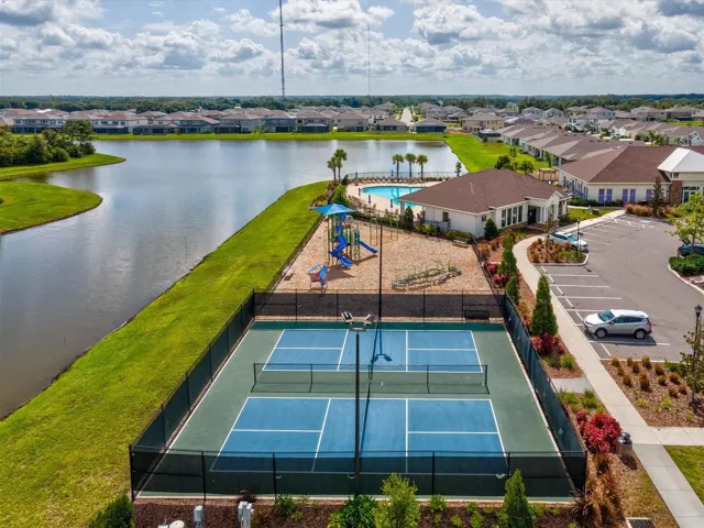 The community offers a pool, playground, park, and dog park. Annual HOA fee is $99, and the property has a CDD with an annual fee of $2,932. Located within city limits with access to shopping, dining, and major commuter routes throughout the Tampa Bay area. Buyers and agents to verify HOA rules, lease restrictions, and pet policies.
