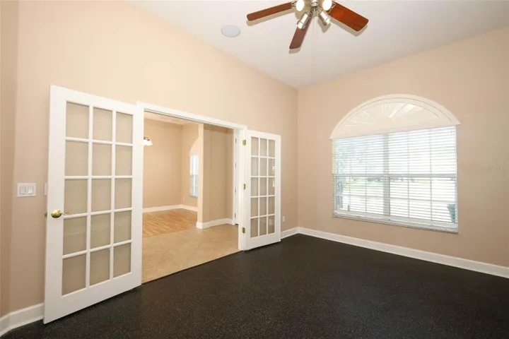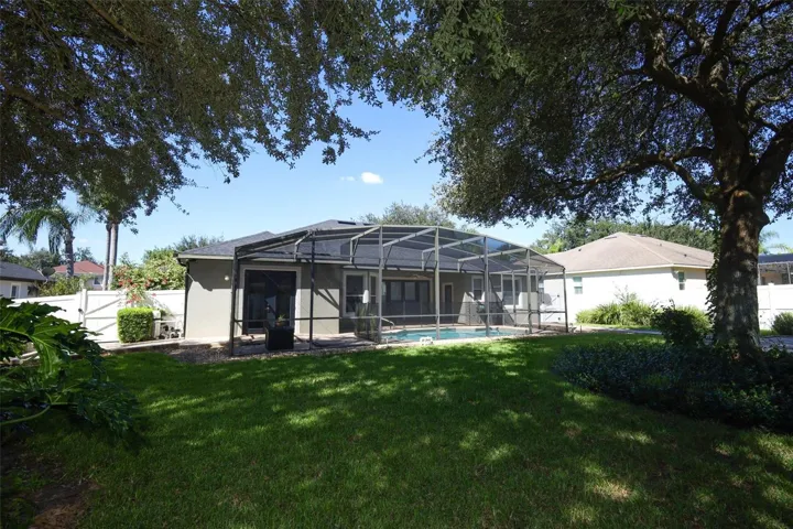 The central living areas have high ceilings and natural light enhancing the kitchen’s eating area and family room – all overlooking the inviting screened pool and fully vinyl fenced backyard. There is a separate formal dining room, and a separate ‘formal front room’ perfectly suited for a home office, library, study, gym, or den – with French Doors already installed. There are paved walkways from the front of the garage leading to the back yard and extend around both sides of the pool. Additionally, there is a paved back patio for sitting, sunning, or grilling. Enjoy a 3-car garage, an inside laundry room, surround sound readiness, and beautiful curb appeal. For your peace of mind: Fresh and professionally painted interior, recently painted exterior, newer and regularly serviced A/C, and the BRAND