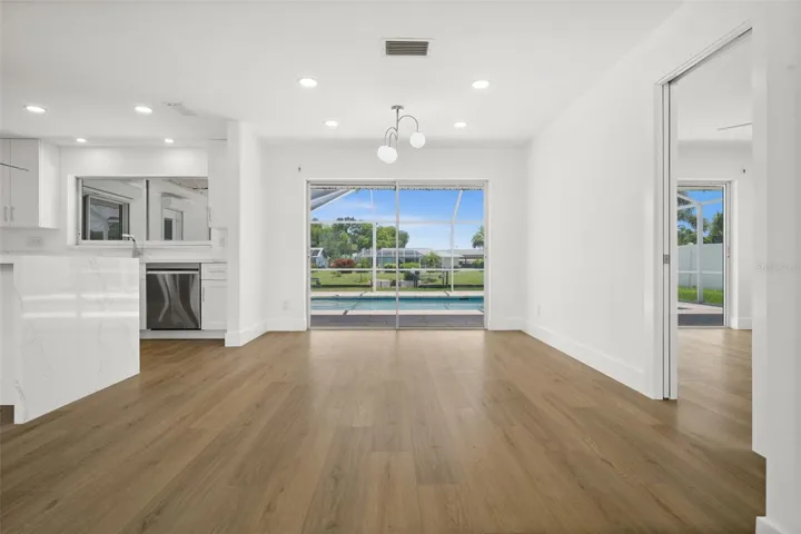 PRICED TO SELL! Welcome to 4419 SE 13th Pl, a beautifully renovated Gulf Access pool home located just minutes by boat from the river, restaurants, beaches and the Gulf! Situated on an oversized .34-acre lot with 110 feet of waterfront, this property offers expansive outdoor space and quick boating access. A composite dock and 10,000 lb boat lift make it easy to enjoy the best of Southwest Florida’s boating lifestyle. The interior is bright and modern, with recessed lighting throughout. The kitchen is a features a large island with quartz waterfall countertops, breakfast bar seating, walk-in pantry, and brand-new stainless steel appliances, including a wine fridge. The space flows into the living and dining areas, and it all overlooks the pool and canal, making it ideal for entertaining. The primary suite opens directly to the lanai and includes a walk-in closet and an ensuite bath with double vanities and a glass-enclosed walk-in shower with rainfall head. The second bedroom also features an ensuite bath. The 3rd bedroom has sliding doors directly to the Lanai, and the fourth bedroom has lots of windows for tons of natural light. A third full bathroom doubles as a pool bath. The large lanai and pool area are finished in travertine pavers, extending into a walkway that leads to the dock. Whether you’re relaxing poolside or watching the sunset from your backyard, this home was designed to maximize outdoor living. Additional features include electric roll-down hurricane shutters around the entire home, a two-car attached garage, and a washer, dryer and laundry sink. This move-in ready home offers a rare combination of space, style, and location in one of Cape Coral’s most desirable neighborhoods.