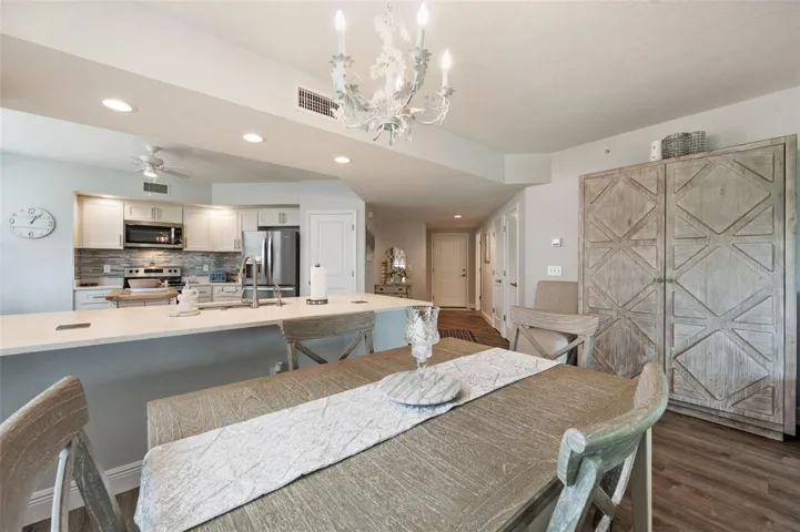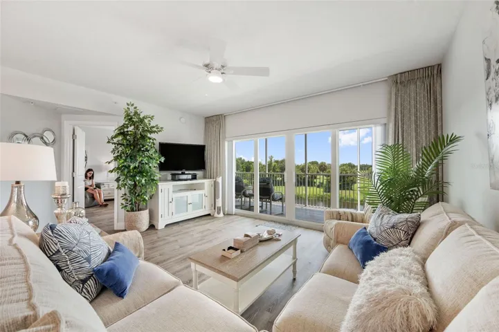 Golf Lake Condos at East Bay are where luxury and everyday convenience meet! Boasting the largest floor plan at 1836 square feet, this end unit offers all-day, natural sunlight and comes FULLY FURNISHED! Enjoy evening sunset skies from your private screened balcony where you’ll have views of lush green space, a private pond with fountain ambiance, East Bay Golf Course and abundant wildlife. The open, split floorplan includes: A large Primary Suite with two walk-in closets and an en-suite bathroom; A spacious Living Room with sliding glass doors that lead to the rear screened porch; A Bright Open Kitchen with custom instant hot water tap, quartz countertops, wood cabinets and stainless-steel Whirlpool appliances; An oversized Laundry Room with built-in cabinets and an extra refrigerator. Built in 2020, the combination of concrete block construction and hurricane impact windows make this unit extremely energy efficient. In addition, this unit transfers with a private 1-car garage located under the building and just steps from the elevator! The property offers two pools, a hot tub and a clubhouse. In addition to these amenities, the low monthly fee includes water, trash, sewer, cable/internet, and grounds maintenance. Golf Lake Condos is an exceptional, high quality mid-rise condo that provides tremendous value and high-end standards. This community is highly desirable and sought after. Not only for its premier location and it’s increasing values, but also because it’s high and dry with no hurricane evacuation necessary. To top it off, you will find the close proximity to shopping, dining, an airport, medical facilities, stadiums, arenas and WORLD CLASS BEACHES simply unbeatable!