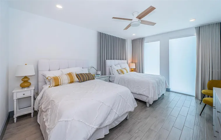 DAZZLING CONTEMPORARY LUXURY WITH UNFORGETTABLE DIRECT WEST-FACING VIEWS OF THE GULF AND BEACH! Located in the highly-acclaimed Onella luxury condominium community, this 4 bedroom 3 ½ bath residence boast gorgeous finishes and spectacular views. Step into an impressive great room that transitions to a superb 37ft-wide covered beachfront balcony. With sweeping panoramic vistas of the azure waters of the Gulf, this mammoth 570sqft balcony is perfect for entertaining friends, family and large gatherings. The spacious open-concept gourmet chef’s kitchen boasts elegant quartz surfaces, coastal white shaker style cabinetry, Wolf/Subzero/Miele appliances, gas cooking, a huge island prep center, sizable breakfast bar, pantry, and beverage center with separate wine chiller. Overlooking the Gulf, the exceptional owner’s suite features private access to the beachfront balcony and an exquisite custom designer closet system with center island dresser and extravagant built-ins. The owner’s bath is a lavish retreat – with resplendent dual vanities, pampering stand-alone soaking tub, and a grand, beautifully-tiled multi-fixture glass rainshower enclosure. Second bedroom suite is large, has fine custom finishes, and a wonderful full designer bath. Guest bedrooms three and four are oversized, and are supported by a luxuriously appointed Jack-n-Jill bath. You’ll appreciate the richly-finished laundry facility, generous in-unit storage, and your large private 2-car garage. The Onella is supported by a fabulous private heated pool and spa with plenty of lounging space, and separate areas for outdoor dining. The community provides private gated access to a brilliant white powder-soft sand beach and the tranquil waters of the Gulf. You’ll relish the miles of sandy shoreline, incredible red-orange sunsets, and moonlit nights that literally light up the beach. Conveniently located near shopping, dining and entertaining, this is a perfect location to enjoy all that beachfront living has to offer. Dimensions are estimates, buyer to verify.