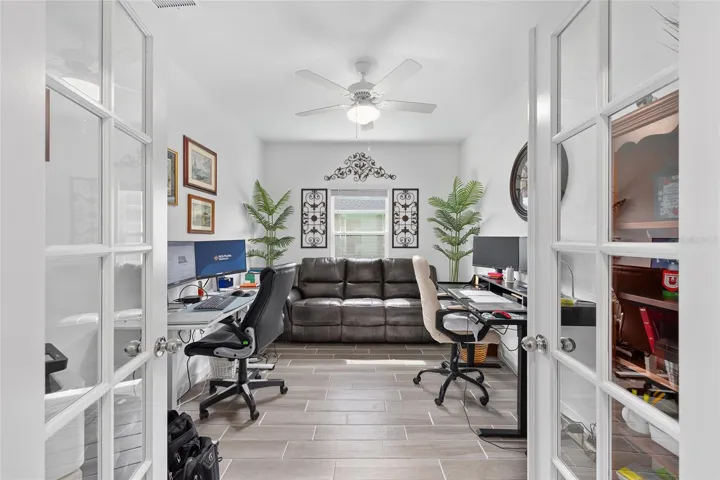 This meticulously maintained custom built Trevi model blends style, comfort, and functionality—perfect for those seeking elegant living in a new and vibrant 55+ community! Featuring 3 bedrooms, 3 bathrooms, and a versatile office/den- flex space with privacy doors. Located on a premium lot, with NO REAR NEIGHBORS and a fully fenced in backyard, this residence is truly ONE OF A KIND! Spanning 2,032 square feet, this home offers an open, spacious layout ideal for family living and entertaining. At the heart of the home is a beautiful chef’s kitchen, featuring a large kitchen island, glistening granite countertops, custom solid wood cabinetry, stainless steel appliances, and ample cabinet space for all your culinary essentials. This expansive open-plan layout that seamlessly integrates living, dining, and kitchen spaces, perfect for entertaining. The primary suite is a true sanctuary, offering an ensuite bathroom with dual vanities, a beautifully oversized tiled stand-up shower with a sleek glass door and waterfall shower system, and two spacious walk-in closets with custom built-ins! The spacious second bedroom is perfect for guests, complete with a deep closet and a private ensuite featuring a shower/tub combo and a deep vanity. The third bedroom is equally impressive, bathed in natural light from a large window and equipped with a deep closet. Steps away, The versatile office/den space is perfect for those who work from home or can easily be converted to a fourth bedroom. Designed for indoor-outdoor living, beautiful large sliders invite you to a very private, oversized extended screened in lanai—a tranquil haven perfect for entertaining! Located on a private homesite that doesn’t back to other homes, you’ll enjoy a serene retreat in your backyard. Enjoy access to the new covered pavilion, community pool, and recreational amenities, including bocce, pickleball, and shuffleboard—providing endless opportunities for leisure and connection. Conveniently located near restaurants, shopping, and just 15 minutes from the renowned World Equestrian Center, this home offers luxury, convenience, and community in one exceptional package. From its luxurious upgrades to its attention to detail, this home is a rare find that perfectly blends sophistication and comfort. Schedule your private tour today!