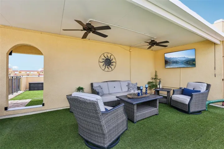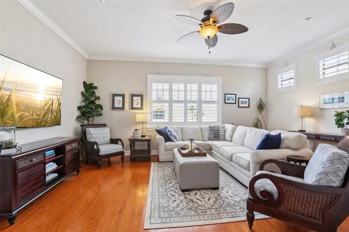 So many designer and luxurious features in this home to include extraordinary water views from different levels of the home, crown molding throughout home for added elegance, marvelous wooden floors, decorative wall accents, plantation shutters, decorative ceiling fans, tinted sliders and 10ft ceilings/ 8 ft doors through-out the home.