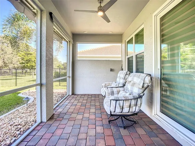 No detail has been overlooked: hurricane-impact windows and doors, custom blinds throughout, upgraded lighting and ceiling fans, and a central vacuum system all add to the comfort and quality of this home. The epoxy-coated garage floor adds durability and style, while the professionally landscaped yard features custom curbing, fencing, and accent lighting to enhance curb appeal and privacy.