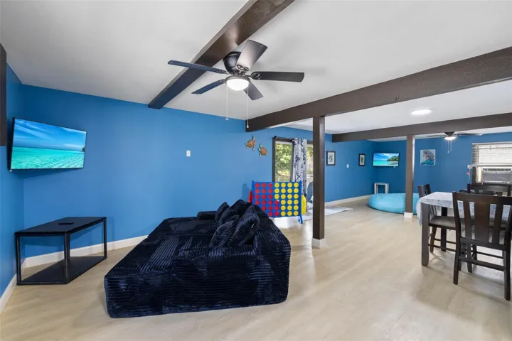 The outdoor space on this property is one of a kind. There is a 2nd story screened in porch, covered 1st story patio, stationary dock, floating dock with kayak launch, and seawall with stairs to the river. The home is being sold turnkey with everything in the pictures, from additional linens, to games, kayaks, and a fully furnished kitchen. Additional upgrades to the home include recent outdoor apoxy floors, new exterior paint, roof (2018), new hot water heater (2025) and new vinyl flooring. Property has transferable flood insurance of 2300 dollars!!