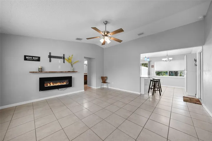 Beautiful, well-maintained 3 bedrooms, 2 bathrooms, home located in a quiet neighborhood. Why rent when you can own for less? The gorgeous kitchen offers all new wood cabinets with soft-close drawers, stainless steel appliances, sparkling granite countertops, a breakfast bar, and pantry. The spacious living room features a charming electric fireplace and mantel. This home has ceramic tile throughout. There is a nice finished detached garage that could be used as a 4th bedroom, office, craft room, workout space, workshop, or extra storage. NEW METAL ROOF. New Impact Windows. New water heater. Washer and dryer included. Newer air conditioner. Pick your own fresh fruit right from your backyard. There is also a large shed in the spacious fenced backyard. Underground electric from the pole to home. Conveniently located near I-75, shopping, restaurants, hospitals, and a short drive to Gulf Beaches. “Virtual Tour 1” to view the 3-D Tour and Floor Plan. “Video Tour 2” to view video tour.