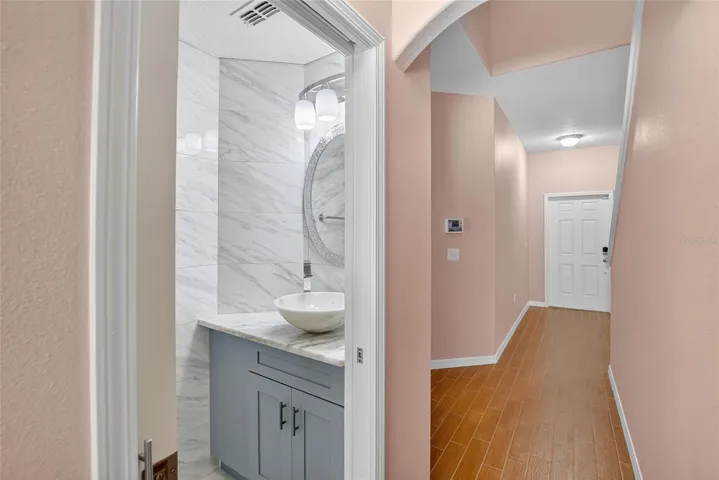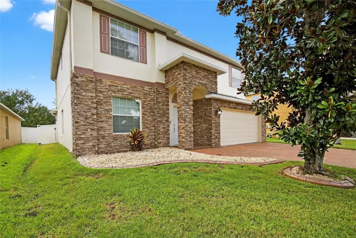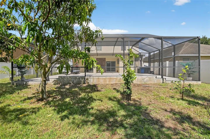This stunning two-story single-family residence offers 2,502 square feet of beautifully updated living space, featuring 4 spacious bedrooms, 2.5 baths, and a 2-car garage with custom cabinetry. Step inside to find gorgeous flooring throughout, a modernized kitchen with solid cabinetry, granite countertops, an expanded island, and a designer backsplash, along with fully upgraded marble bathrooms. Upstairs, all bedrooms are conveniently located, including the luxurious primary suite with a walk-in closet (featuring a built-in organizer) and a spa-like en-suite bath with dual sinks, walk-in shower, and soaking tub. The backyard is a private retreat designed for both relaxation and entertaining. Enjoy the sparkling heated pool with dual water features, LED lighting, and a screened enclosure with an additional 8 LED lights. The backyard also boasts a stone-accented outdoor kitchen (just add your grill), shellock paver deck, fruit trees and vinyl/metal fencing for added privacy. This home has been meticulously maintained and updated for peace of mind: New roof (2025) Pool with LED lights & screened enclosure (2020) Backyard shellock pavers (2020) Outdoor kitchen with granite top (2023) Driveway pavers & stone-accented exterior (2023) Fully upgraded bathrooms with marble finishes (2023) Expanded kitchen island & tile flooring (2023) Custom closets in garage & bedrooms (2018)