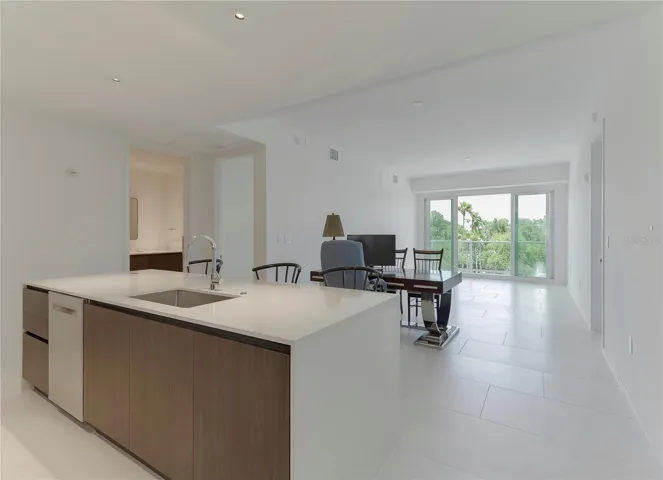 Welcome to your new home in sunny Clearwater, Florida. Serena by the Sea is a fabulous place to call home with state-of-the-art features and amenities such as the saltwater community pool, sauna, outdoor grill area for your personal use or entertainment, cabanas, gas fire pit, game room, theater room, places for a massage, gym with bikes, treadmill, and more. A social room, theater room, and solar panels power the common areas, 24/7 concierge, and gated. Take the elevator to your 3rd floor suite with a large balcony that has unobstructed views of the Intracoastal waterway, and best of all the sunset. The balcony faces the north and there is an angle view of the water from both bedrooms. One assigned parking space underneath the building. Custom kitchen with a 10 foot quartz countertop island, state-of-the-art appliances, inside laundry room off the kitchen with a washer and dryer, and much more. A must-see to appreciate. All furnishings included except for the antique cookie jar and phonograph.
