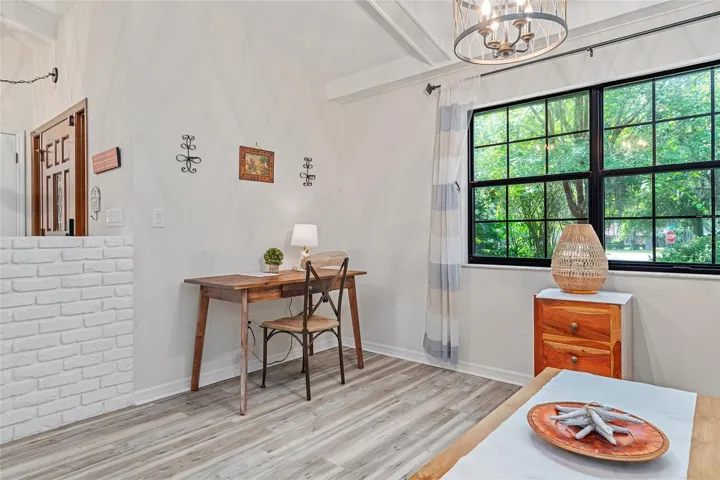 Nestled amidst the tranquility of the highly sought-after Forest of Golden Hills, this meticulously upgraded 3 bed | 2.5 bath home is an oasis ready to embrace you. As you enter, be captivated by the soaring vaulted ceilings adorned with elegant wood beams. Underfoot, newly installed luxury vinyl floors create an atmosphere of warmth and sophistication. The spacious living room invites you to relax by the cozy fireplace, while the adjacent dining area, currently transformed into a charming sitting area, offers a tranquil space to unwind. The well-equipped kitchen boasts all the essentials for culinary creations. Its convenient breakfast nook seamlessly connects to the expansive enclosed porch, where you can savor your meals amidst the mature landscaping. A laundry area and powder room complete the main hallway, providing utmost convenience.
