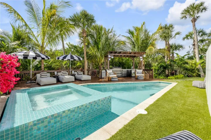 Experience the ultimate in luxury waterfront living with this newly built 2023 modern residence, perfectly situated on Callalisa Creek with direct access to the Intracoastal Waterway. Designed for the avid boater, this exceptional property offers THREE DEEP WATER BOAT SLIPS, A 16,000 LB BOAT LIFT, and effortless access to the open water right from your private dock. Spanning three stories with an elevator, the home showcases sleek architectural design and panoramic views from the third-floor balcony, living room, and modern kitchen. The interior features four spacious bedrooms, each with its own en-suite bathroom, and has been professionally designed with premium finishes throughout, offering both elegance and comfort. Step outside to your private backyard oasis, complete with a brand-new custom pool and spa, expansive wood deck, pergola, and a fully equipped summer kitchen with a pet and kid friendly mosquito, noseeums repellent system that covers 3,000 sqft and controlled by an app on your phone—ideal for entertaining or relaxing after a day on the water. Located in the heart of Central Beach, New Smyrna Beach, this property offers unmatched convenience with golf cart access to the beach, Publix, Flagler Avenue’s shops and restaurants, and Smyrna Dunes Park. This one-of-a-kind estate seamlessly blends modern design, waterfront luxury, and coastal lifestyle—an opportunity not to be missed.