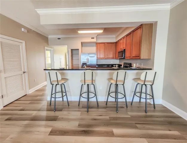 Step into a bright, open-concept living space with brand-new fans, interior paint and flooring throughout, elegant crown molding, and built-in shelving in both the main living area and the primary bedroom. A spacious flex room offers the perfect option for a third bedroom, home office, or creative studio. Your private balcony is the ultimate spot to savor sunrises, sea breezes, and starlit nights.