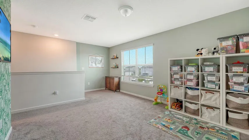 Upstairs, a generous loft provides versatile living space for a playroom, media room, second living area, or office. The large primary suite features a thoughtfully designed en-suit bathroom with dual sinks and a walk-in closet. Two additional bedrooms, multiple closets, and a full bath complete the upper level.